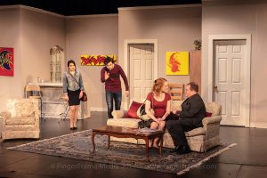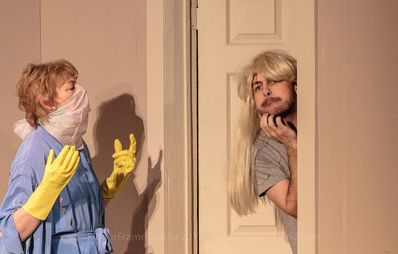 A comedy by Robert Ainsworth When Max’s girlfriend throws him out, he begs his friend Steve to stay at his place for 2 weeks. What starts out as a joke on Steve by Max putting on a wig and dress, turns into the first of many mistaken identities. The hysterics start when Steve’s Mother visits from England wanting to meet her new daughter-in-law, Susie, who does not exist. With the help of Steve’s friend Patricia, the daughter-in-law ruse is maintained until Max’s girlfriend finds out she is pregnant and Steve’s ex-girlfriend, the real Susie shows up pregnant. See what lengths Steve, Max and Patricia will go to keep all this from Steve’s Mother.